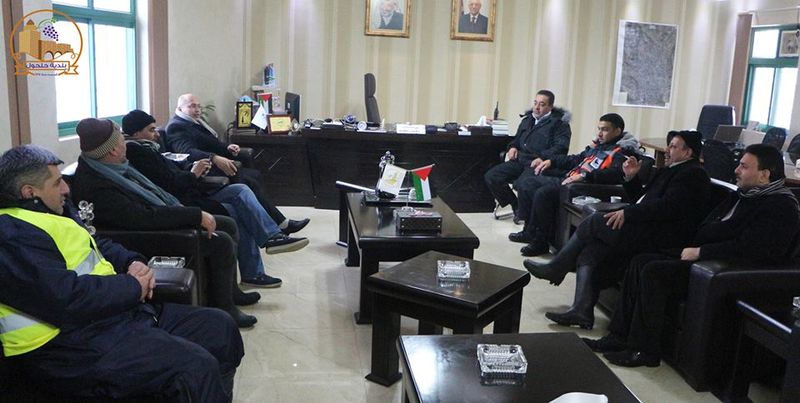 استقبلت غرفة طوارئ بلدية حلحول منذ يوم أمس الأربعاء الموافق 7/1/2015 العديد من الوفود الرسمية التي زارت مقر غرفة الطوارئ في بلدية حلحول للاطلاع على آخر التطورات لدى غرفة الطوارئ. حيث استقبلت غرفة الطوارئ ممثلة برئيس البلدية السيد وجدي ملحم وعدد من أعضاء المجلس البلدي وموظفي غرفة الطوارئ يوم أمس الأربعاء عطوفة محافظ محافظة الخليل الأخ كامل احميد ونائب قائد منطقة الخليل العقيد ناضر عمر والوفد المرافق، والذين قاموا بجولة تفقدية لغرفة طوارئ بلدية حلحول والتقوا مع موظفي الغرفة واطلعوا على سير العمل والجهود المبذولة، وبدوره قدّم السيد وجدي ملحم رئيس بلدية حلحول ورئيس غرفة طوارئ بلدية حلحول شرحاَ وافياً عن آخر المستجدات والحالات التي تعاملت معها الغرفة وعن الجهود الحثيثة التي يبذلها طاقم غرفة الطوارئ وعن الاستعدادات التي اتخذتها البلدية لمواجهة هذا المنخفض. كما استقبلت غرفة الطوارئ يوم أمس رئيس بلدية خاراس السيد عبد الفتاح حميدان.