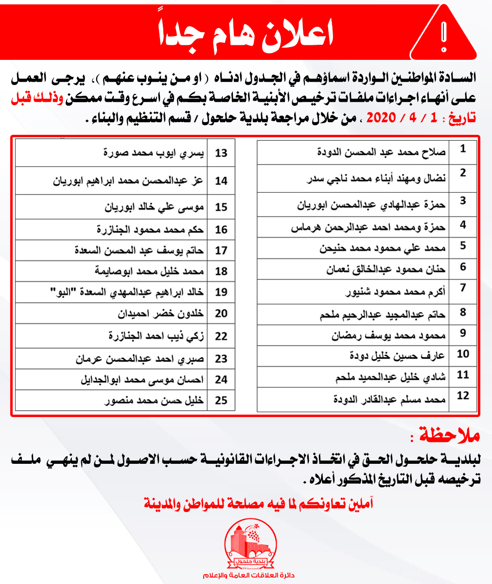 اشترك بالقائمة البريدية لتبقى على اطلاع بأخبار وفعاليات بلدية حلحول
