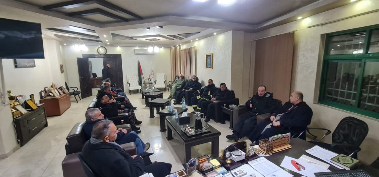 سعادة رئيس البلدية السيد حجازي مرعب يستقبل مدير جهاز الدفاع المدني في محافظة الخليل العميد ركن خليل مسعود والوفد المرافق ، حيث تم الاطلاع على سير عمل غرفة الطوارئ الخاصة بالبلدية وتأكيد التعاون خلال المنخفض القطبي.