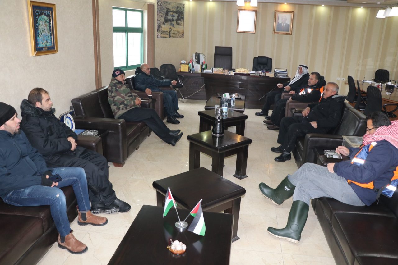 سعادة رئيس بلدية حلحول السيد حجازي مرعب يستقبل وفدا من حركة فتح ممثلا بعضو اقليم شمال الخليل الاخ ياسر زماعرة وامين سر منطقة حلحول التنظيمية الاخ خالد عرمان ، حيث تم اطلاع الوفد على سير الاعمال في غرفة طوارىء البلدية خلال المنخفض القطبي.