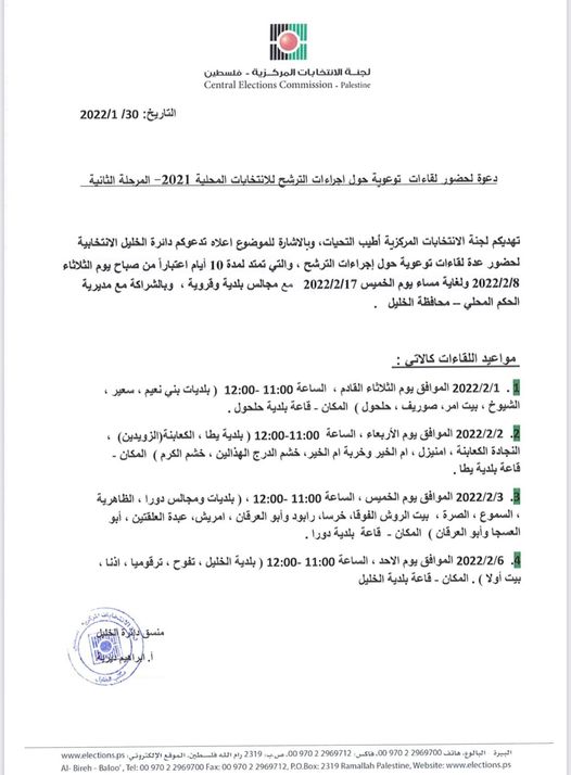 المزيد دعوة لحضور لقاءات حول اجراءات الترشيح للانتخابات المحلية 2021 - المرحلة الثاينة .