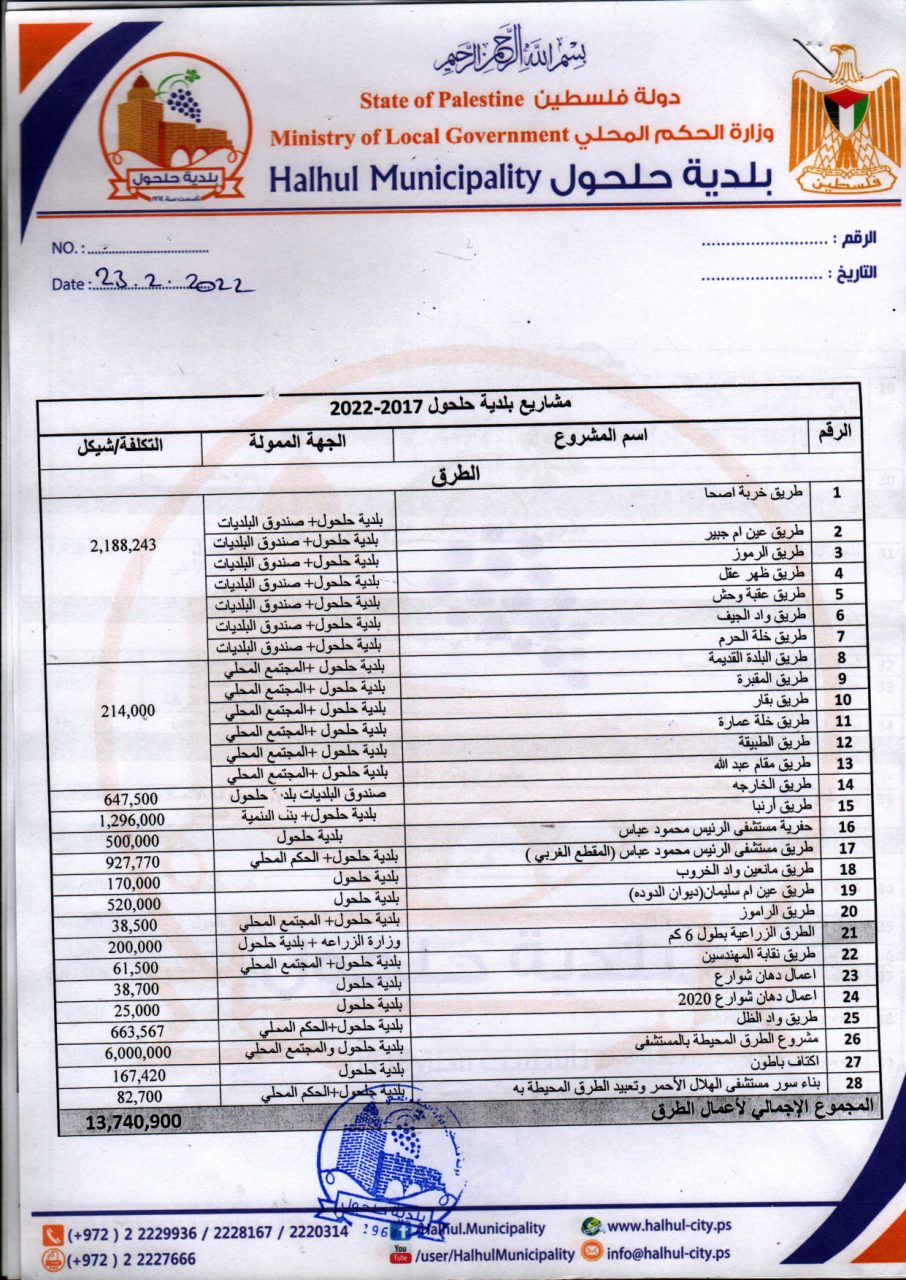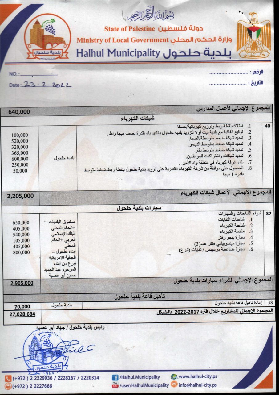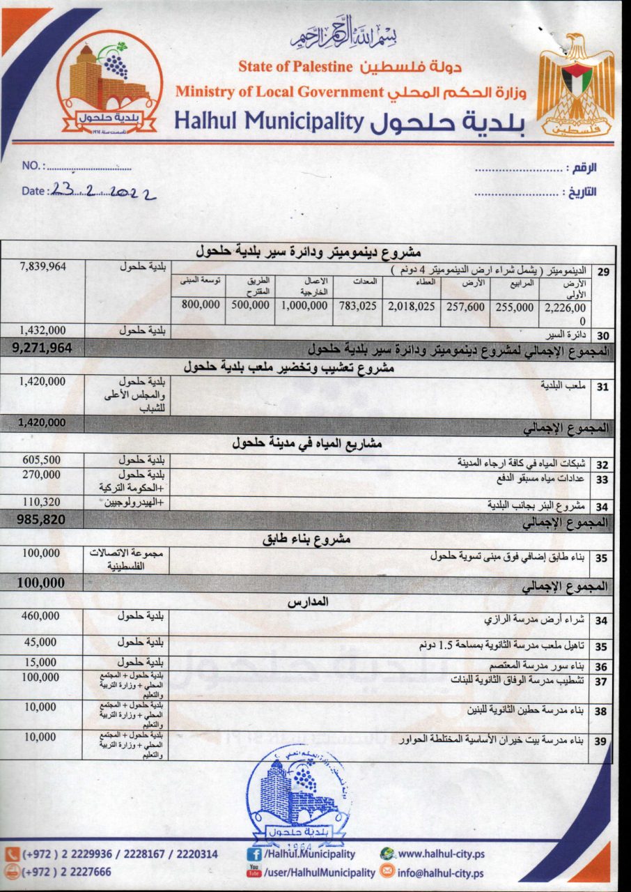 بلدية حلحول تفقد اعمال مشروع تشطيب مبنى دائرة سير مدينة حلحول.
