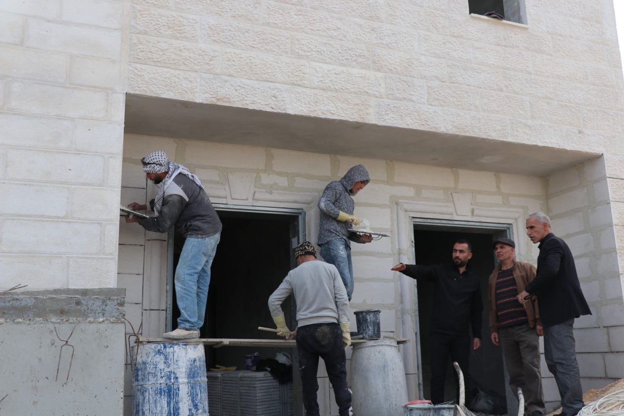 جانب من تفقد نائب رئيس بلدية حلحول السيد خليل الشطريط وطاقم البلدية لأعمال مشروع تشطيب مبنى دائرة سير مدينة حلحول.