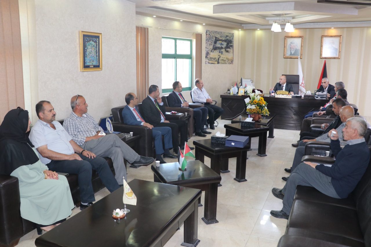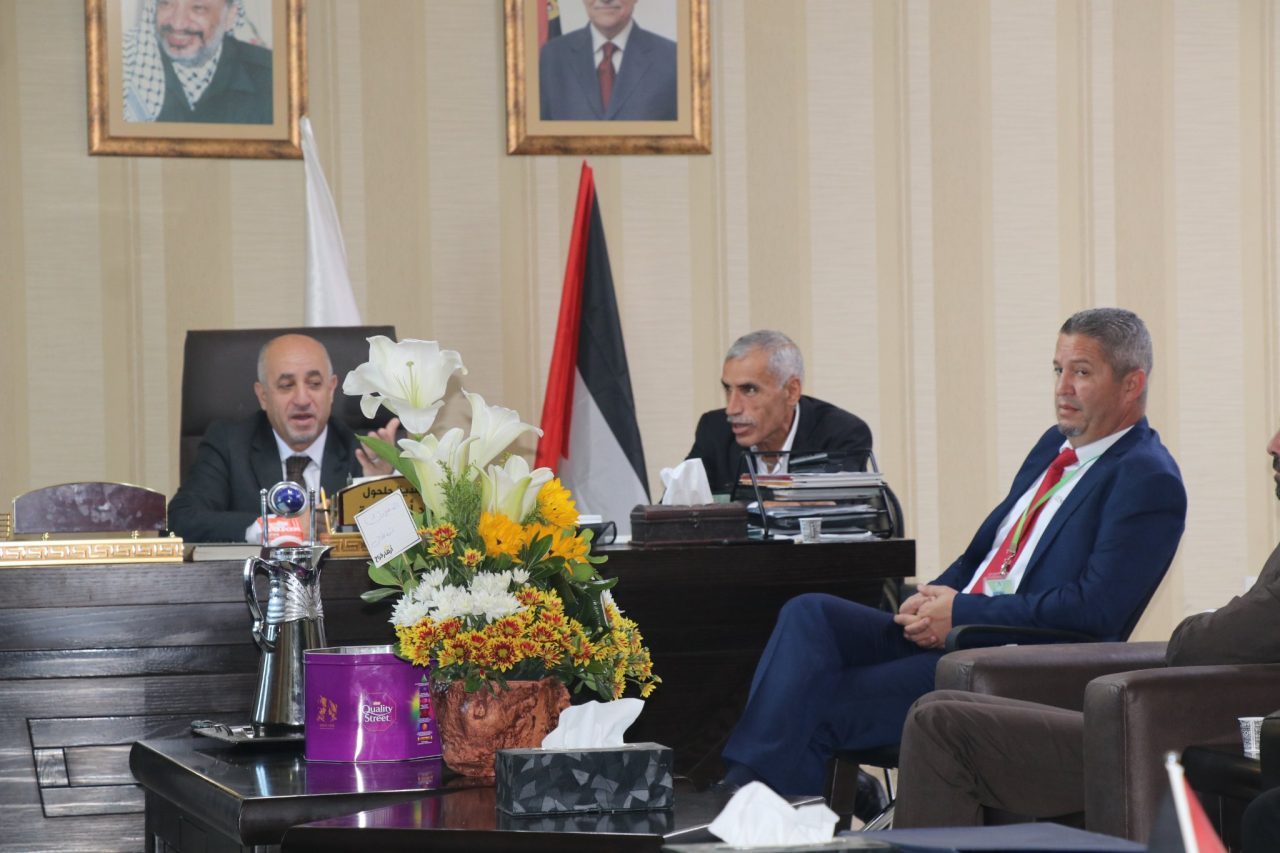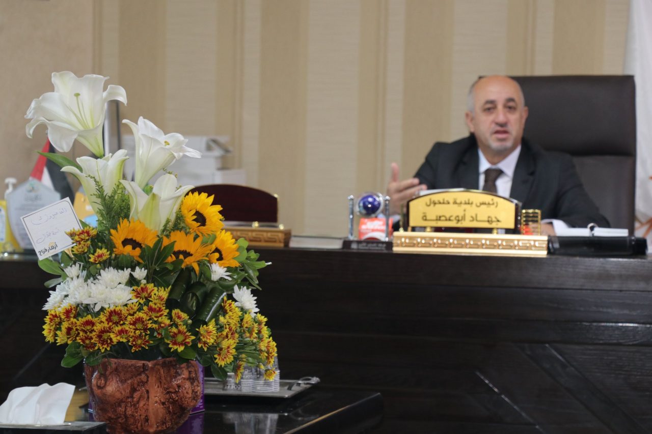 جانب من استقبال سعادة رئيس بلدية حلحول السيد جهاد ابوعصبة لوفد من شركة جوال ، حيث تم تقديم التهنئة للمجلس المكلف بقرار مجلس الوزراء ، وبحث سبل التعاون والعمل المشترك .