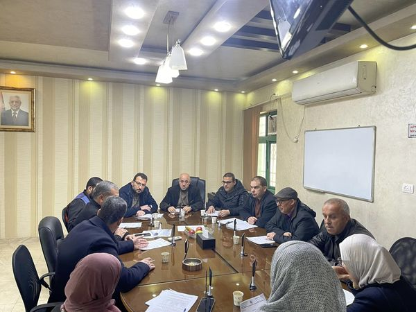 بلدية حلحول ممثلة بسعادة رئيس البلدية السيد جهاد أبوعصبة وعدد من أعضاء المجلس البلدي يعقدون اجتماعا مع مدراء الدوائر ورؤساء الاقسام لبحث ودراسة موازنة البلدية 2023 وذلك يوم الأثنين الموافق 21/2/2023 .