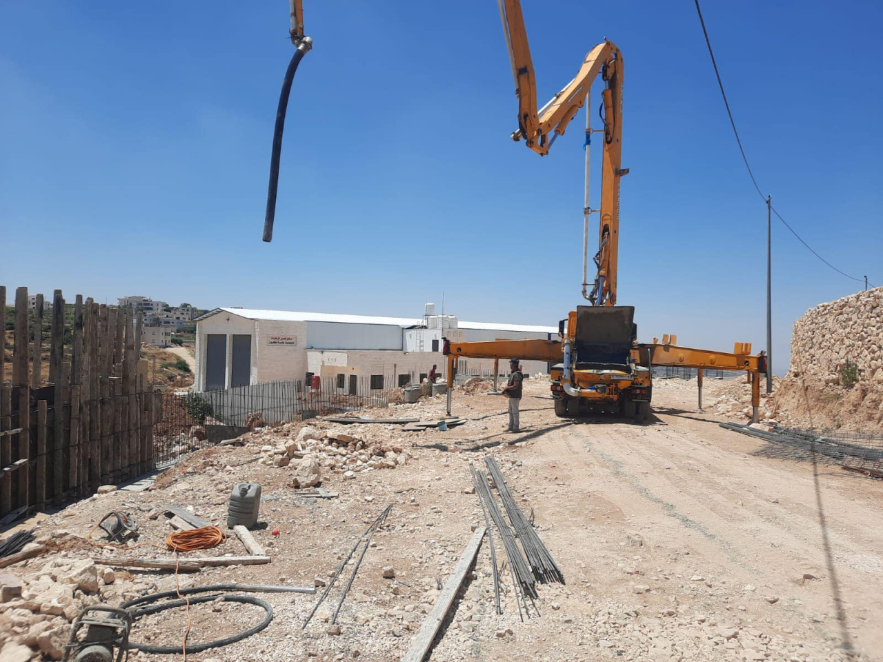 إستمرار اعمال قسم المشاريع في بلدية حلحول في تأهيل الطريق الواصل بين مديرية النقل والمواصلات/حلحول الى مركز فحص المركبات (دينموميتر بلدية حلحول) حيث تم تمديد شبكة مياه وتجهيز توسعة الشارع وبناء جدران استنادية .