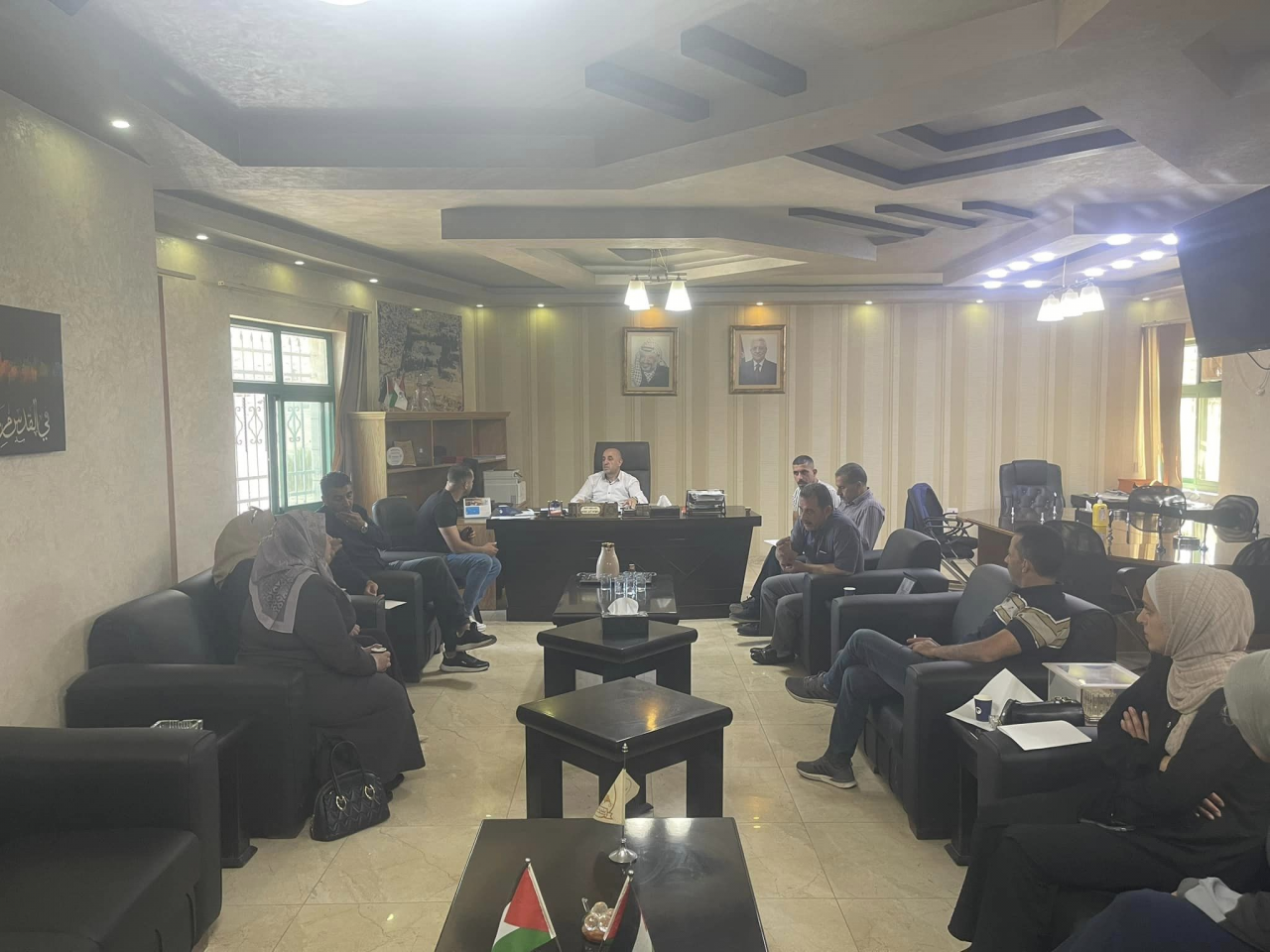 بلدية حلحول ممثلة بسعادة رئيس البلدية السيد جهاد أبوعصبة وعدد من اعضاء وموظفي البلدية يستقبلون وفدا من ضريبة أملاك الخليل يوم الأربعاء الموافق 12/7/2023 وذلك لبحث سبل وآليات التعاون والعمل على مراسلة الإدارة من اجل بحث إمكانية فتح نافذة لنظام الاملاك في بلدية حلحول بالتزامن مع ادخال بيانات الأحواض بداية العام.