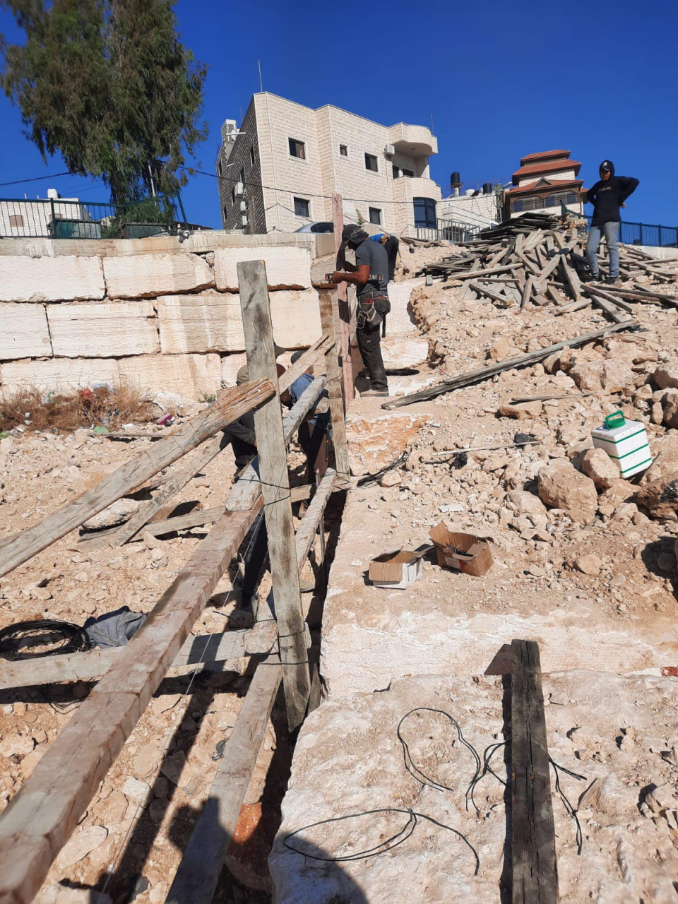 استمرار اعمال قسم المشاريع/بلدية حلحول في تأهيل الطريق الرابط بين الشارع الرئيسي وشارع زبود (بناء جدران استناديه) .